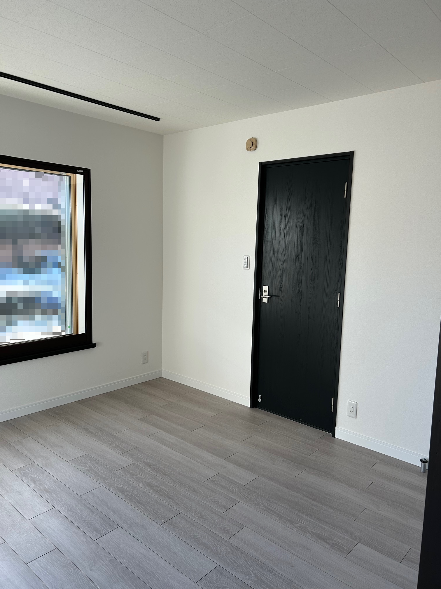 入口は片引き戸を撤去し、新しく壁を造り防音ドアと音配慮ドアの二重ドアにして遮音性を高めました。